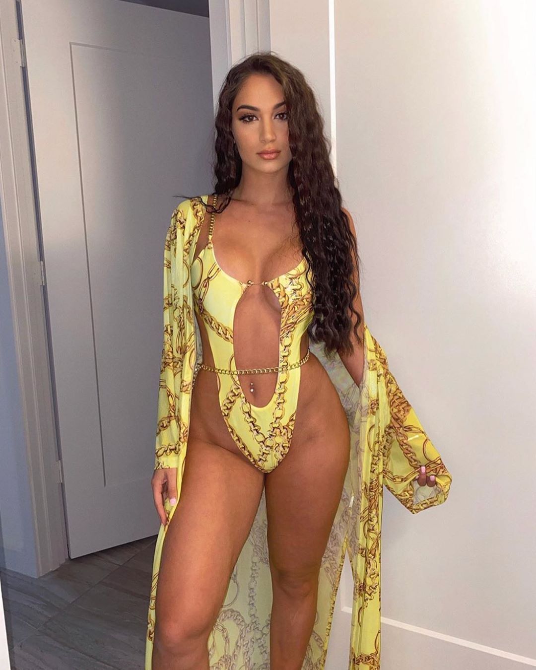 Nouveau maillot de bain à chaîne en métal Bikini une pièce imprimé